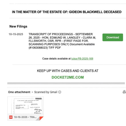 Get immediate Updates on dockets, events and document filings